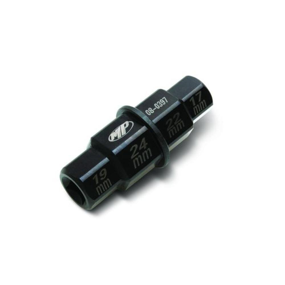 Four metric hex sizes: 17, 19, 22 and 24mm 3/8" square drive on both ends