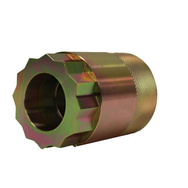 The Whites ATV Pinion Bearing Nut Tool is a necessary item for removing the pinion gear bearing lock nut on the rear differential of Honda ATVs. Manufactured from cold rolled carbon steel for exceptional strength and durability. Constructed with a knurled finish for a better grip when operating by hand and a 1/2" square socket drive for use with a ratchet or torque wrench for accurate installation.