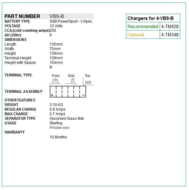 - SSB PowerSport V-spec batteries are completely spill and leak proof, and can be safely fitted in an inverted position