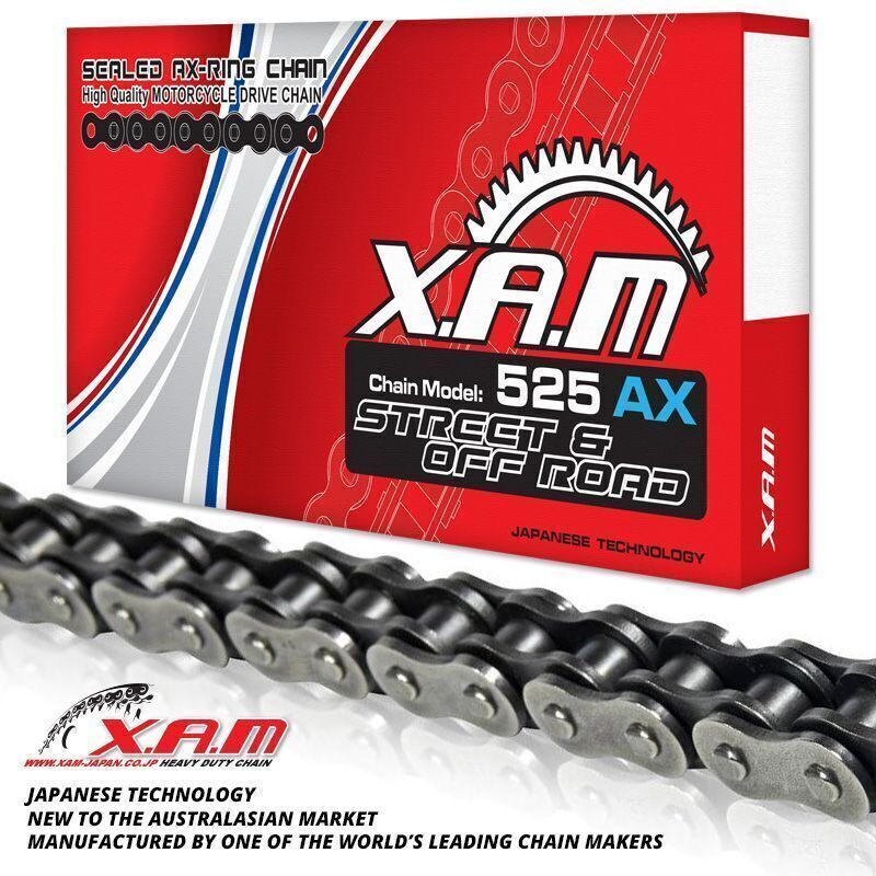XAM O-Ring chains have “O” shaped seals and improved metallurgy giving youlonger wearlife than standard chains. Giving the chain a longer life gives you more value for your money. Recommended for commuter and tourer motorcycles