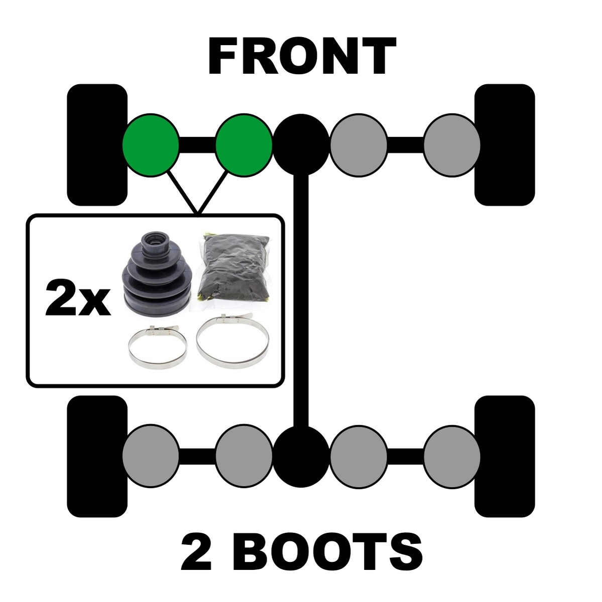Upgrade your vehicle's protection with the All Balls CV Boot Kit, the trusted choice for off-road enthusiasts seeking reliability and performance.