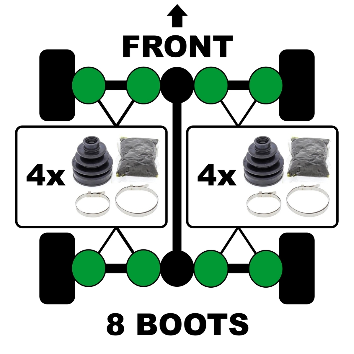 Upgrade your vehicle's protection with the All Balls CV Boot Kit, the trusted choice for off-road enthusiasts seeking reliability and performance.