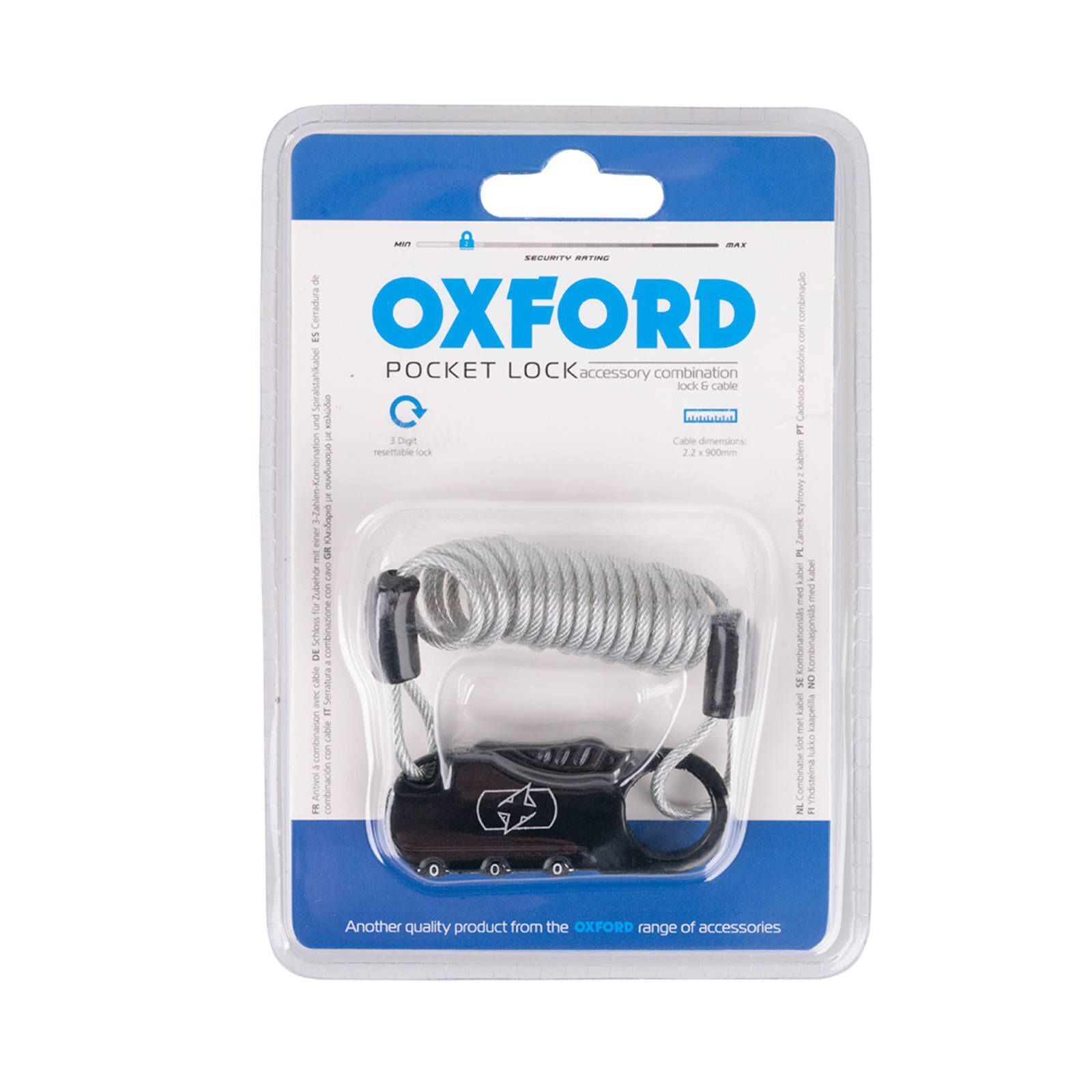 The Pocket Lock is a 3-digit resettable combination, cable lock.