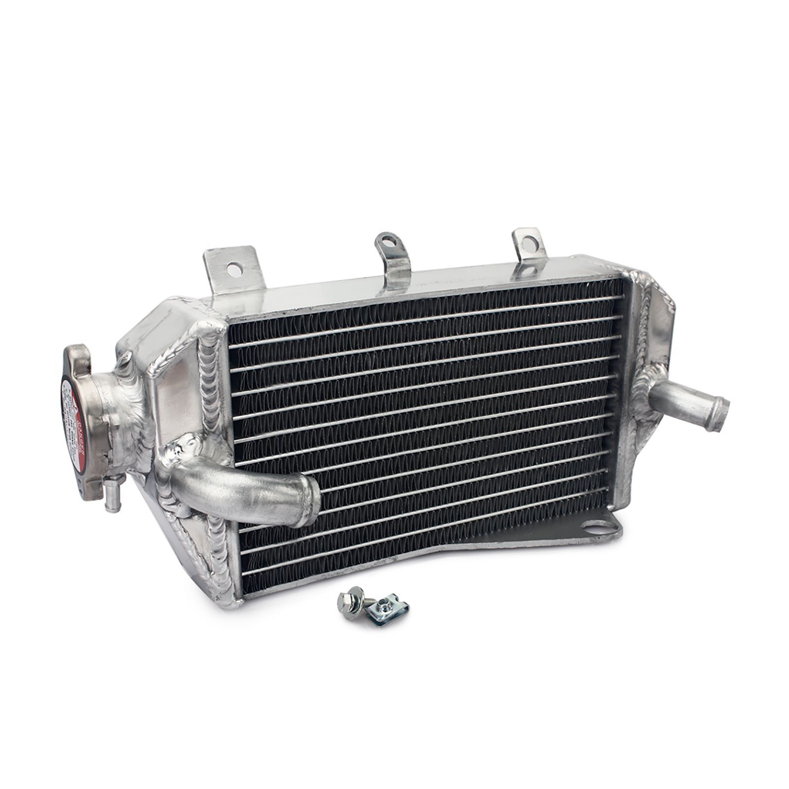Whites aluminium radiators make great replacements to your bent, cracked, and damaged radiators. Whites radiators offer exceptional cooling and maximum efficiency to ensure your machine's top performance. Based on the OEM specs, a hand-welded aluminium design offers both a great fit and styling. All cap side radiators will include a new radiator cap.