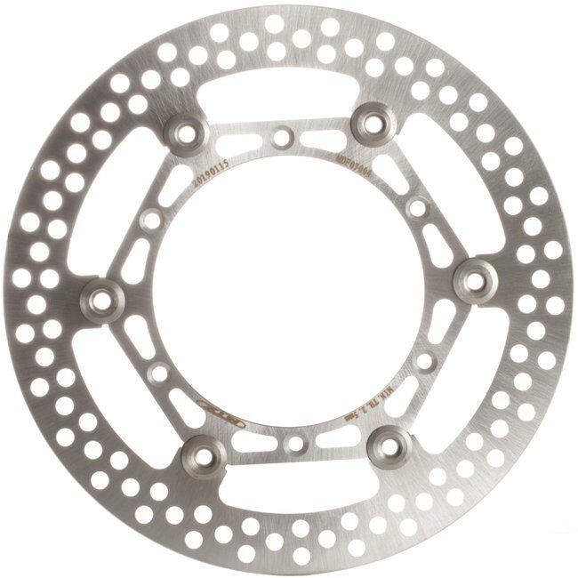 MTX floating discs are made from two segments of stainless steel which are riveted together to allow the outer section of stainless steel to expand under extreme temperatures. The outer section is manufactured from Japanese SUS 420 stainless steel, then heat-treated to HRC 36+-2 while the centre of the disc is manufactured from steel or alloy. An alternative to large original discs, floating discs improve braking performance by ensuring the disc is always in perfect alignment with your pads for the perfect contact throughout all operating temperatures. Lightening and drill holes are designed to improve braking performance and reduce the disc temperature.